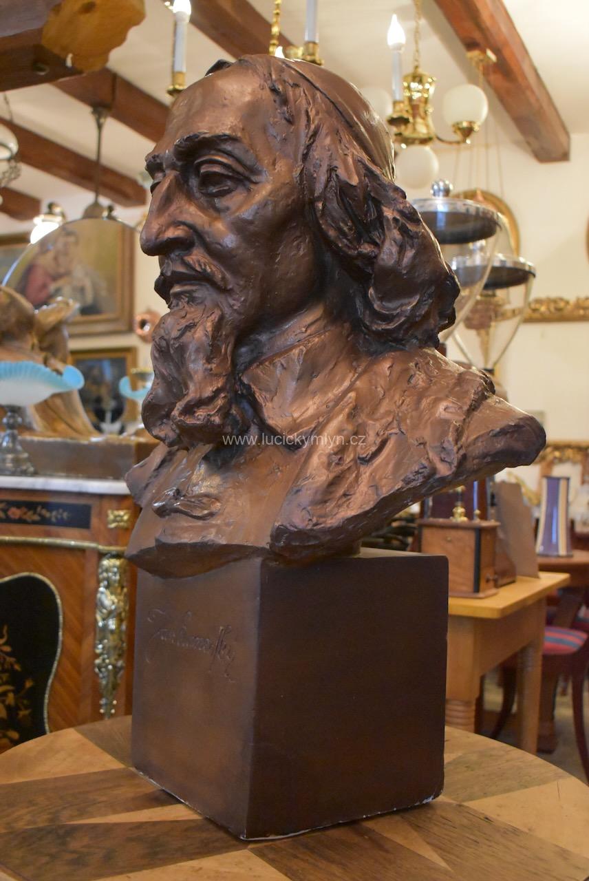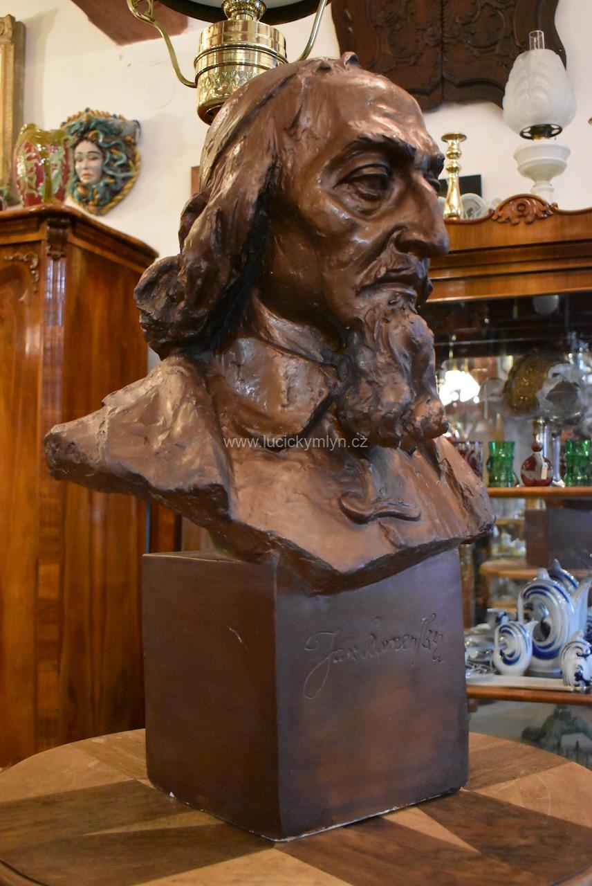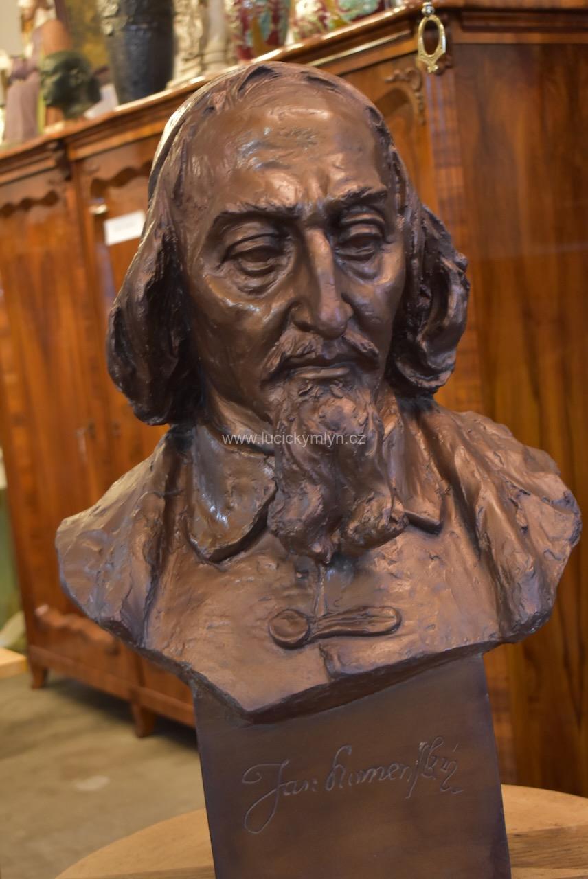 Busta Jana Ámose Komenského „Učitele národů” – medailér a sochař Jiří Prádler, uměl. sádra patinovaná na temný bronz