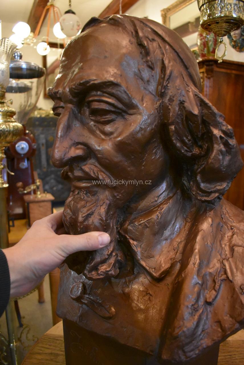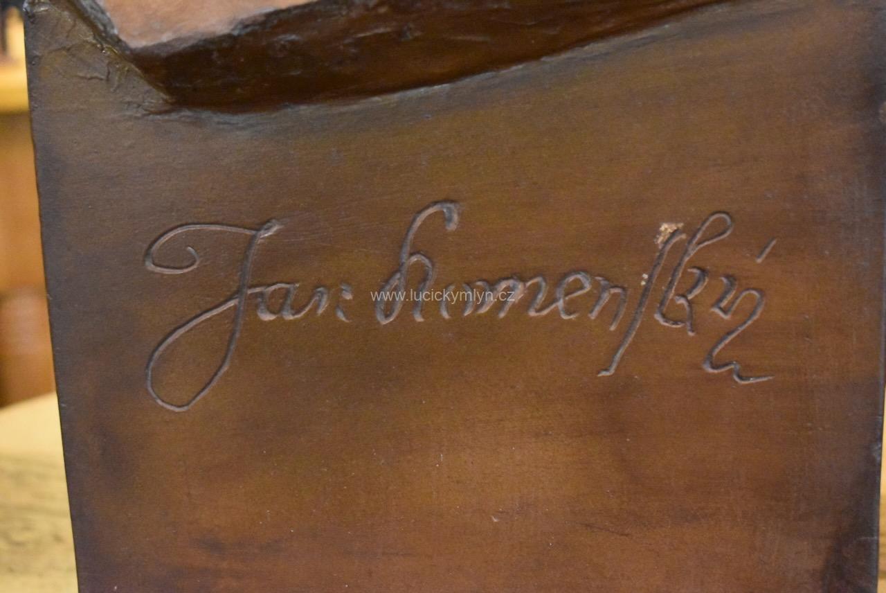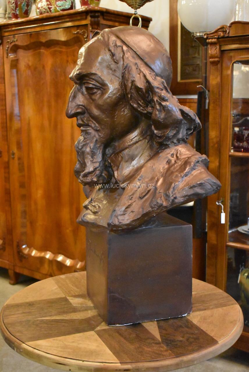 Busta Jana Ámose Komenského „Učitele národů” – medailér a sochař Jiří Prádler, uměl. sádra patinovaná na temný bronz
