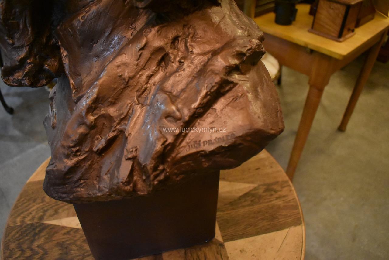 Originální dílo od význačného umělce pocházejícího ze Sezemic u Pardubic, kde se narodil r. 1929. Byl jedním z posledních žáků Otakara Španiela. Věnoval se převážně pamětní medailérské tvorbě, návrhu mincí i sochařským monumentálním dílům. Vytvořil unikátní soubor vysokoškolských insignií a odznaků, které se užívají dodnes. Oblíbená umělecká témata, jako je Jan Ámos Komenský, zpracoval i ve své medailérské podobě. Signovaná busta je vhodná k tematickému doplnění veřejných budov, jakož i k muzejním či sběratelským účelům. Originální, sochařsky velmi zdařilé, dílo může posloužit i pro potřeby filmu. Dále je vhodné k povznesení dobové expozice s tématem staré školy či školní třídy. Originální předmět v původním, velmi dobrém stavu po očištění a menší povrchové renovaci.