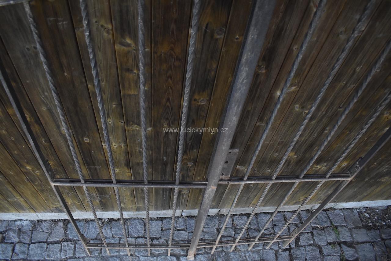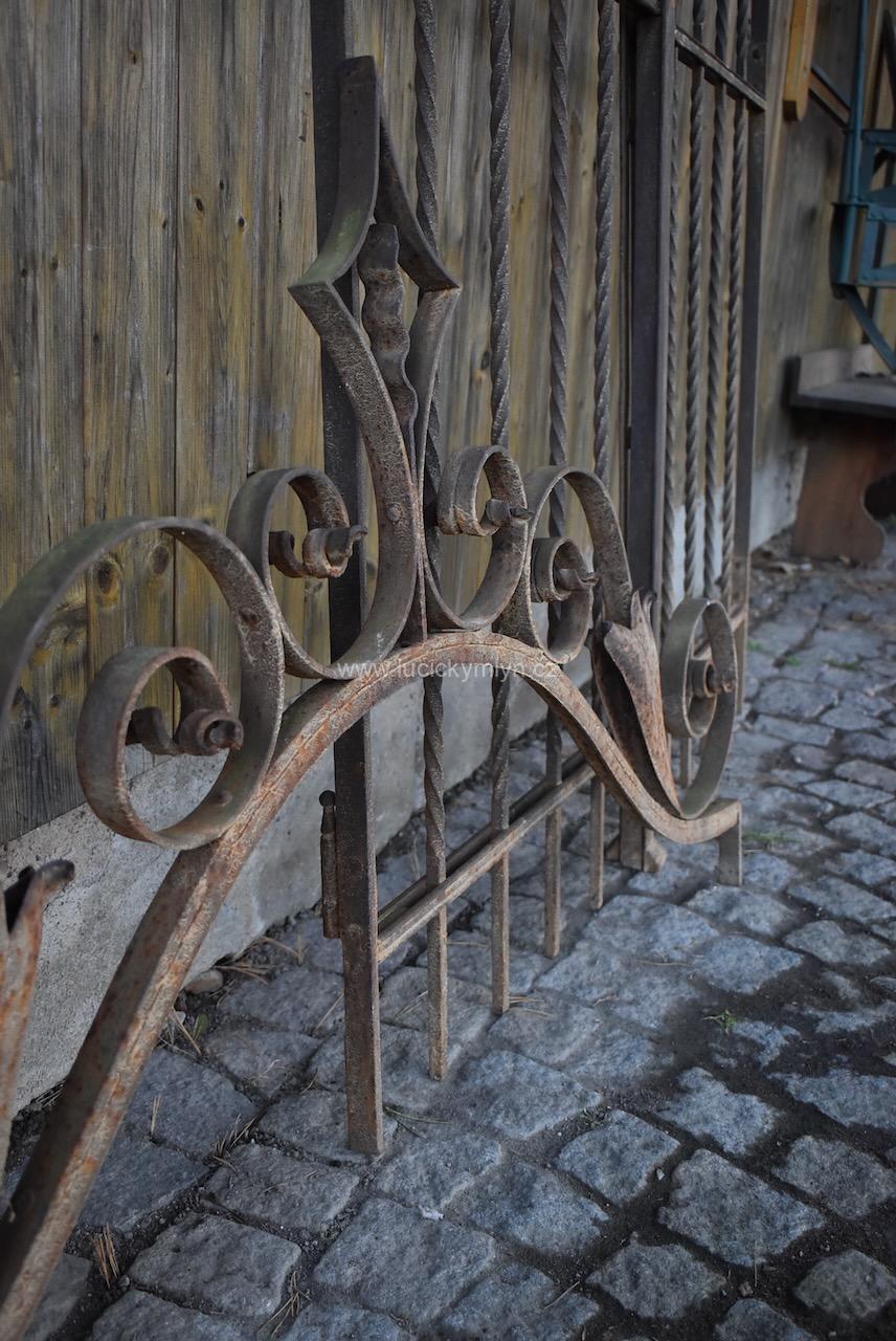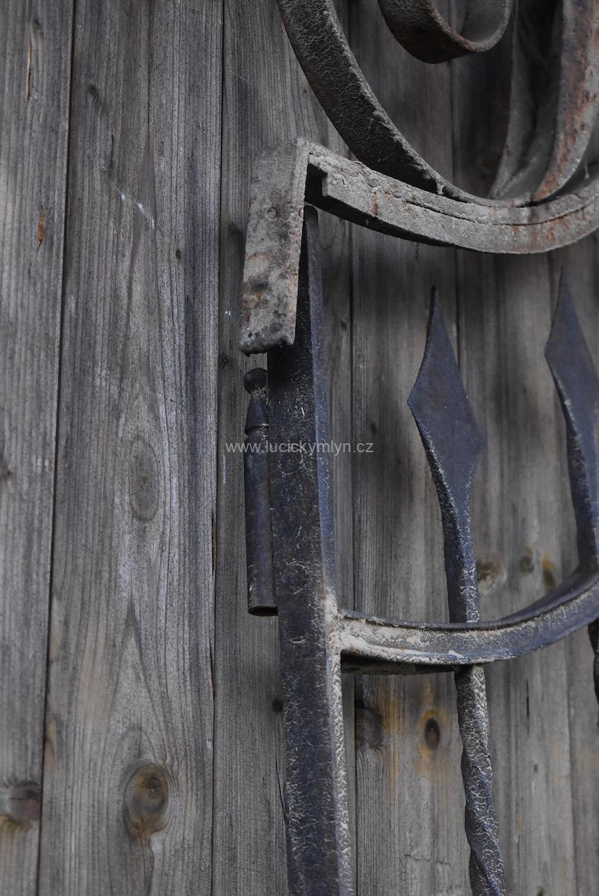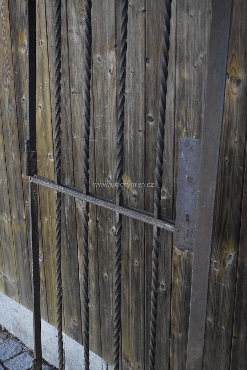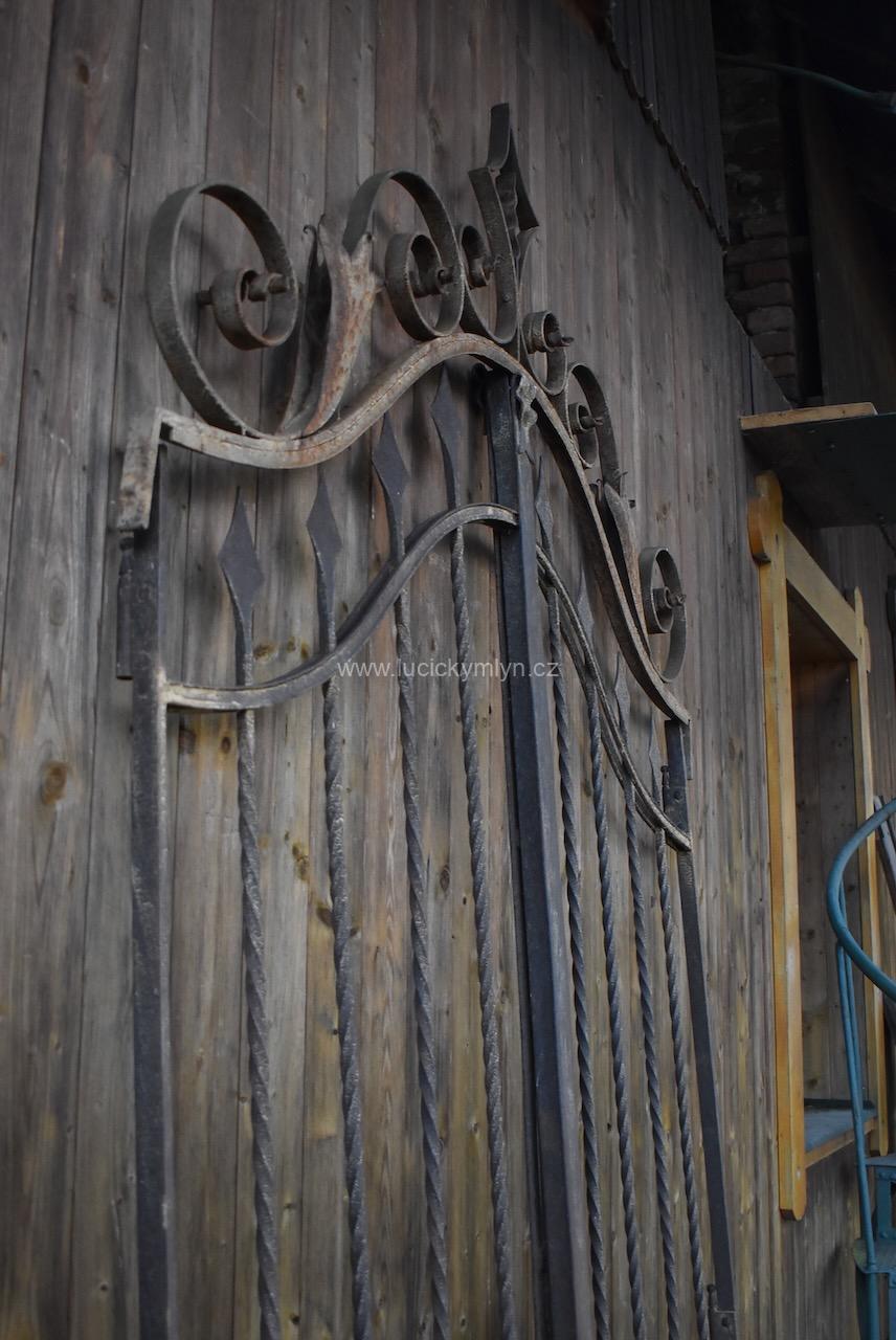 Užší a velmi „vzdušná” brána od staré vily, byla kovářsky vyrobena v okouzlujícím, historizujícím stylu z ručně kovaných, tzv. tordovaných (stáčených) hranolů a pásoviny. I přes více jak staleté, povrchové opotřebení je brána stále zdravá a má velmi kvalitní ocel, která vydrží mnohem více, než dnešní, rychle korodující a výrazně měkčí materiály. Bránu v hezkém stavu, stačí lehce mechanicky očistit či opískovat, mírně porovnat a doplnit rám z pásoviny či „L“ profilu, na který se navaří závěsné panty. Na tento velmi jednoduchý, obvodový rám se nahoře osadí pevná oblouková ozdoba, která je součástí reprezentativní brány. Kovanou ocel je na závěr vhodné opatřit základním a následně i vrchním nátěrem. I pokud by tato brána zůstala zcela bez nátěru, vydržela by nejméně dalších sto let. Nová reprezentativní branka této velikosti a výrazně vyšší úrovně zpracování, Vás jistě vyjde několikanásobně dráž. Chladná krása kovářského řemesla vznikala odedávna ve žhnoucím ohništi. Po tisíciletí ji utvářely neumdlévající ruce kovářovy, poháněné bezbřehou fantazií, umem i nezměrnou touhou po dokonalosti.