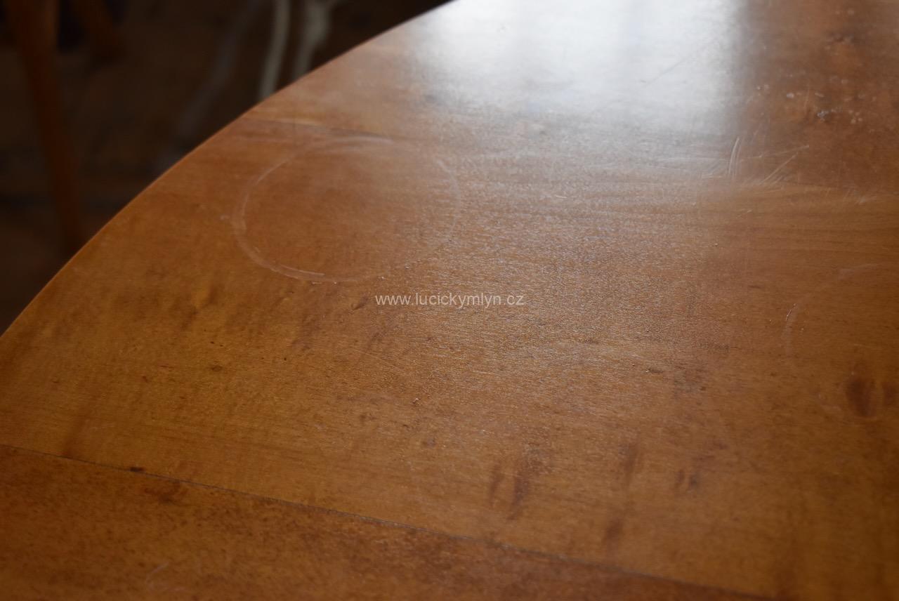 Stůl je po renovaci. Povrch stolu byl vzhledem k jeho převážně užitnému charakteru opatřen velmi odolným voskovým nátěrem.