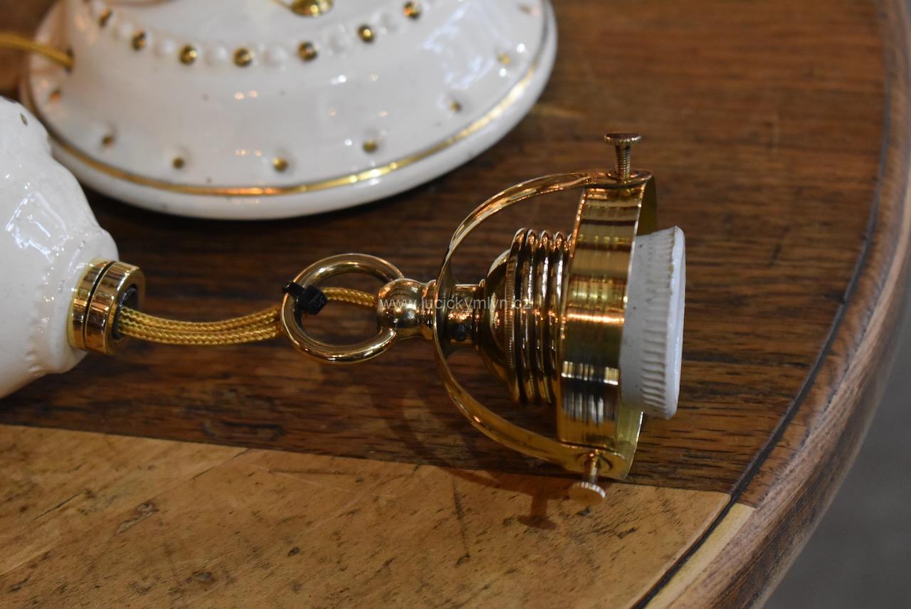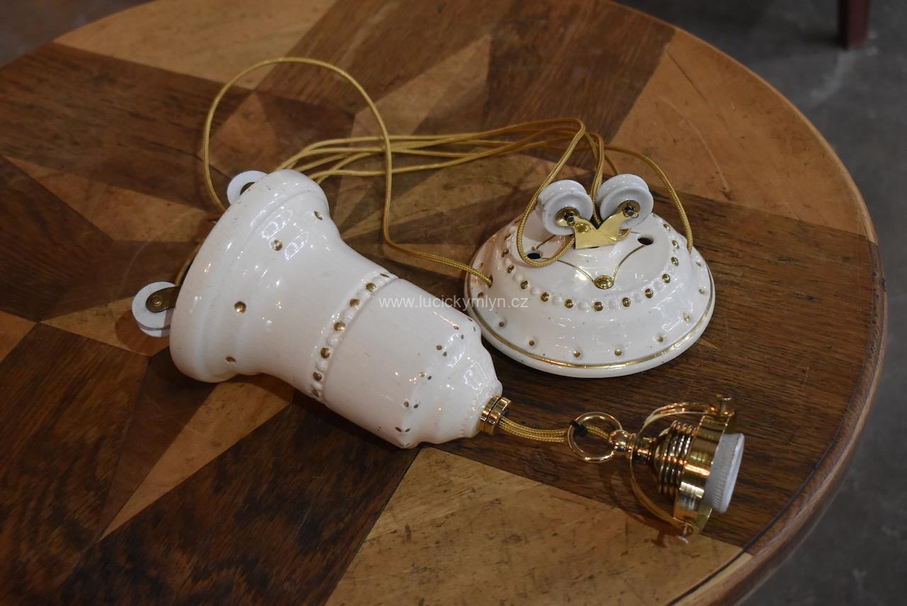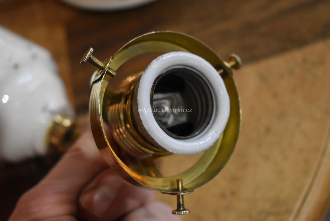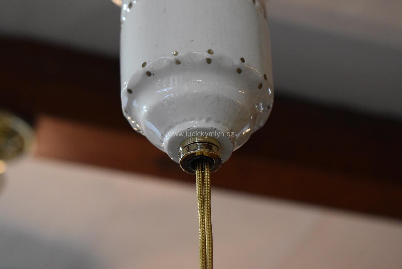 Větší měšťanská stahovačka má díky zdvojeným kladkám lehčí chod a dvojnásobnou stahovací délku. Originální kladkový mechanismus s esteticky hodnotným dvoudílným tělem, byl vyroben převážně z krémově bílé keramiky a mosazi. Starožitné stahovací, měšťanské, nadstandardní světlo, pochází z období vrcholné secese, okolo roku 1910. Stínidlo (širm) se upevňuje na mosazný košíček, který je součástí mosazné objímky s porcelánovým kroužkem. Upínací průměr tohoto košíčku je typizovaný (už přes 100 let normovaný), a proto lze do něj upnout téměř všechna stínidla, která máme v nabídce. Na renovaci těchto stahovaček používáme pouze originální elektro-komponenty. Pouze opletené elektro-kabely jsou z důvodu bezpečnosti nové.