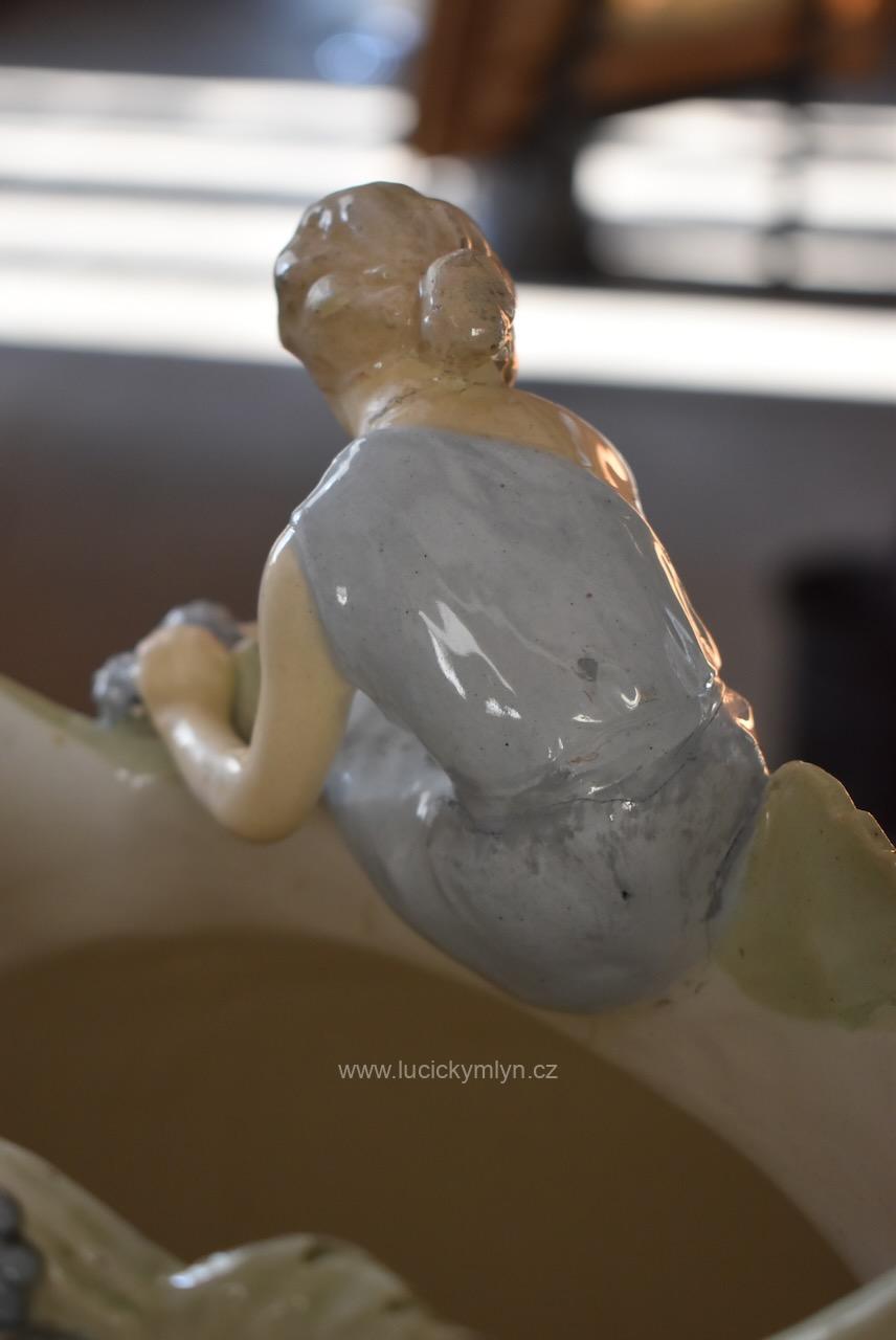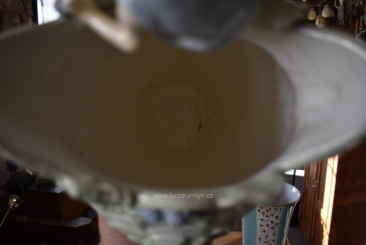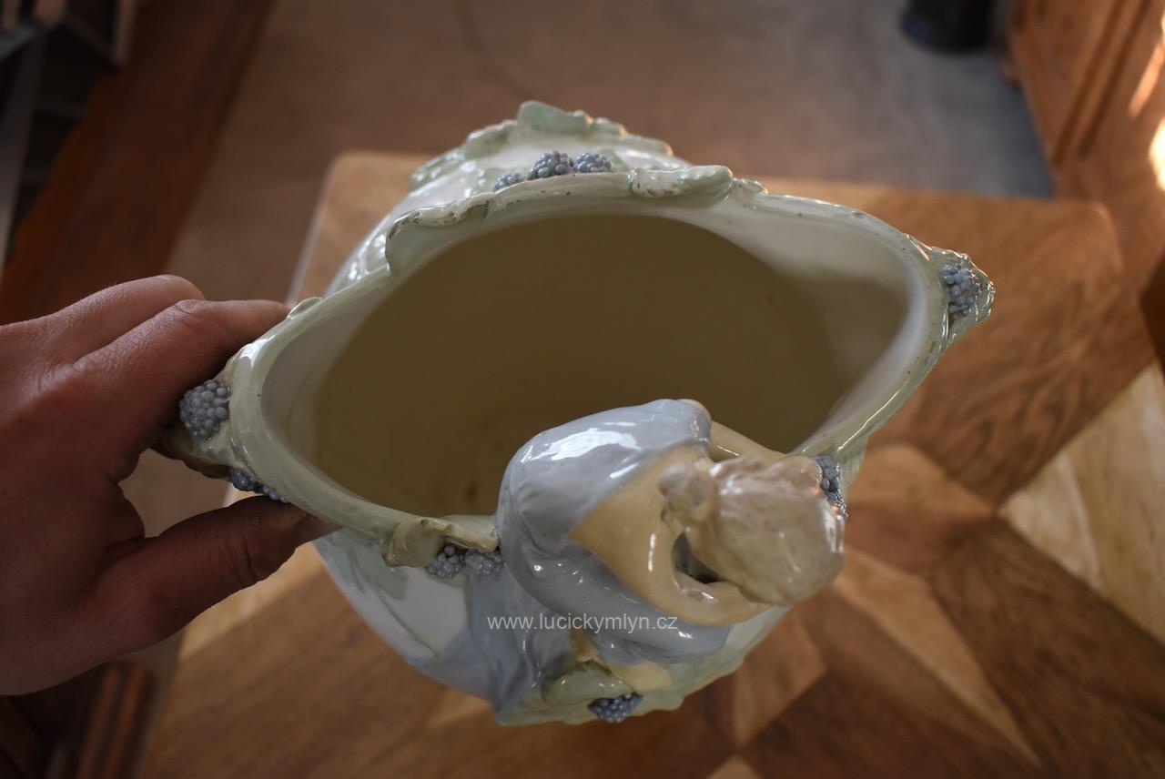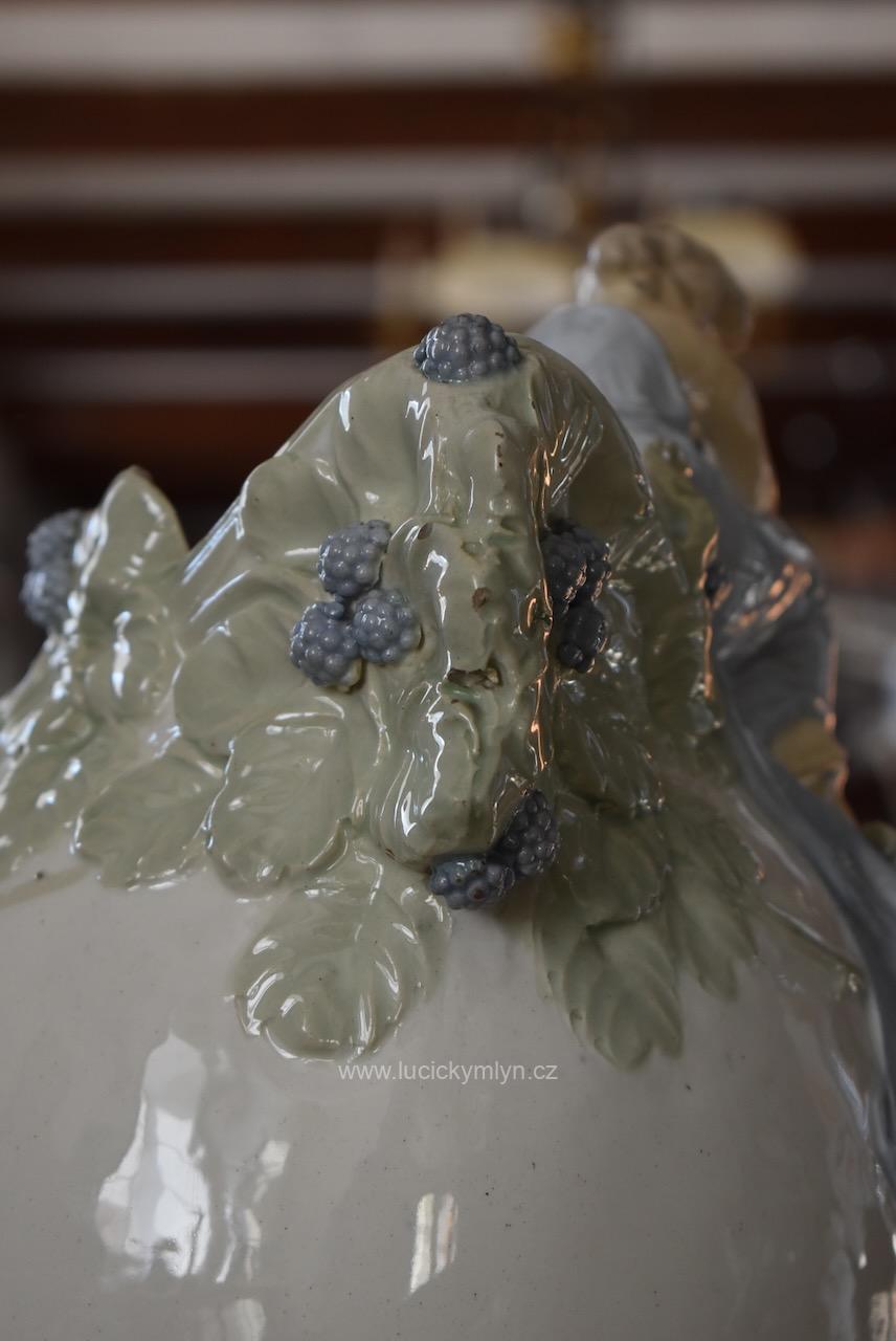 Okouzlující starožitná secesní váza zvaná „Ostružina“ z bíle glazované a ručně kolorované keramiky – model č. 141, návrh připsaný Hugovi Uherovi (kolem 1905)