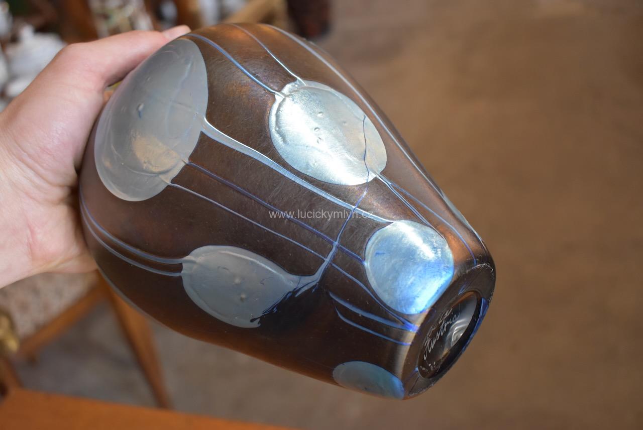 Skleněná váza Loetz Klostermuhle, Šumava přelom 19. a 20.stol., Loetz Austria značení z let 1899 až 1903