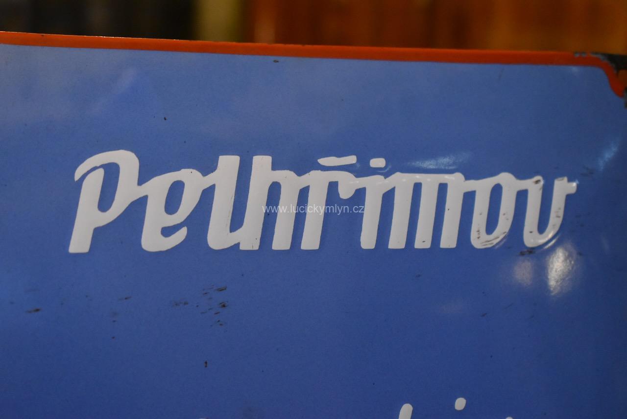 Původní smaltovaná cedule ze středního období socialismu „Agrostroj Pelhřimov“ (21×59)