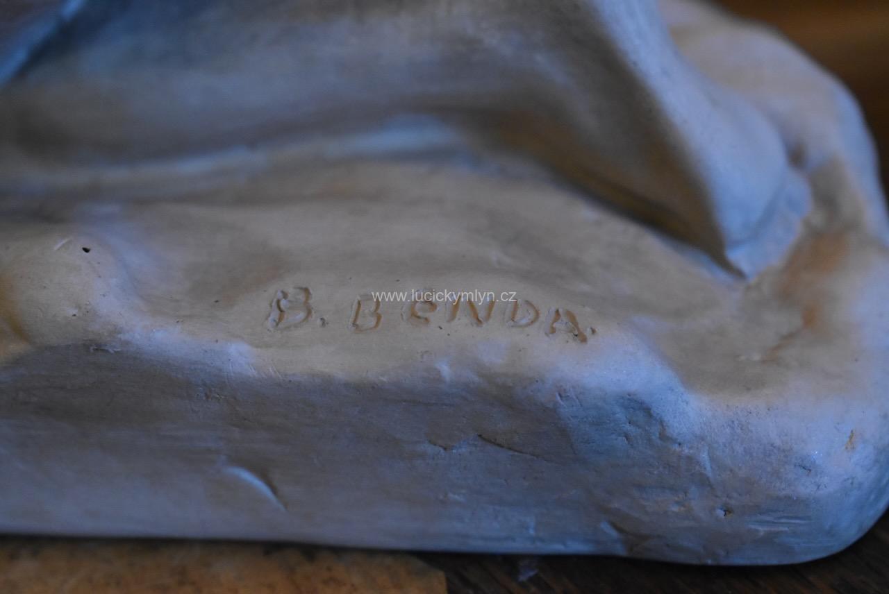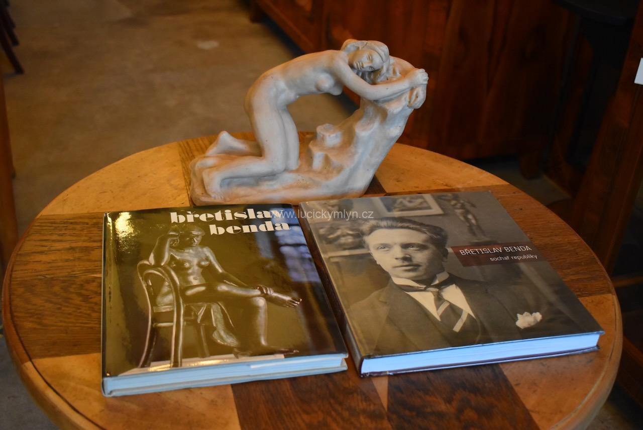 O autorovi: Břetislav Benda byl významným českým sochařem 20. století, jehož dílo zahrnuje několik set plastik a kreseb. Narodil se 28. března 1897 v Líšnici u Milevska a zemřel 19. srpna 1983 v Praze. Bendova tvorba byla zvláště zaměřena na ztvárnění či zachycení odvěkého téma nahé ženy, a proto byl nazýván „sochařem ženského těla“. Benda začal rozvíjet svou zálibu v kreslení již v mládí a následně se rozhodl stát sochařem. Studoval na sochařské a kamenické škole v Hořicích od roku 1911 do 1915. Poté byl přijat na Akademii výtvarných umění, kde se stal žákem Josefa Václava Myslbeka. Jeho studia byla přerušena první světovou válkou, během níž utrpěl vážná zranění obou dlaní. Po válce pokračoval ve studiích na Akademii pod vedením Jana Štursy a v roce 1923 se stal členem S.V.U. Mánes. Během své plodné kariéry se Benda stal uznávaným a velmi vyhledávaným sochařem. Pracoval v Praze, kde měl vlastní ateliér. V roce 1966 mu byl udělen titul zasloužilý umělec a v roce 1973 byl také jmenován národním umělcem. K jeho osmdesátým narozeninám, proběhla retrospektivní výstava jeho prací, která se stala kulturní událostí roku 1977. Benda se specializoval na zobrazování ženského těla a jeho díla, byla často umístěna ve veřejných prostranstvích, parcích i budovách. V jeho životě lze rozlišit několik tvůrčích období. V prvním období do roku 1937, pracoval na výzdobě budov a sochách pro památníky padlým. Během nacistické okupace vytvořil alegorické plastiky, které vyjadřovaly utrpení českého národa a touhu po svobodě. Po válce vytvořil několik památníků, připomínajících hrdinství v boji proti okupantům. Ve svém posledním tvůrčím období po roce 1953 se vrátil k motivu ženského těla a vytvořil několik známých plastik. Neúnavný sochař Břetislav Benda, zanechal v českém sochařství významnou stopu a jeho skvělá díla jsou dodnes ceněna pro svou krásu a expresi. Naše soška klečící Andromedy u skály, byla zhotovena ze světlejší pálené hlíny. Sběratelsky vyhledávaná autorská soška má menší oťuk na okraji vlasů, přímo nad pravou tváří. Jinak nepoškozeno.