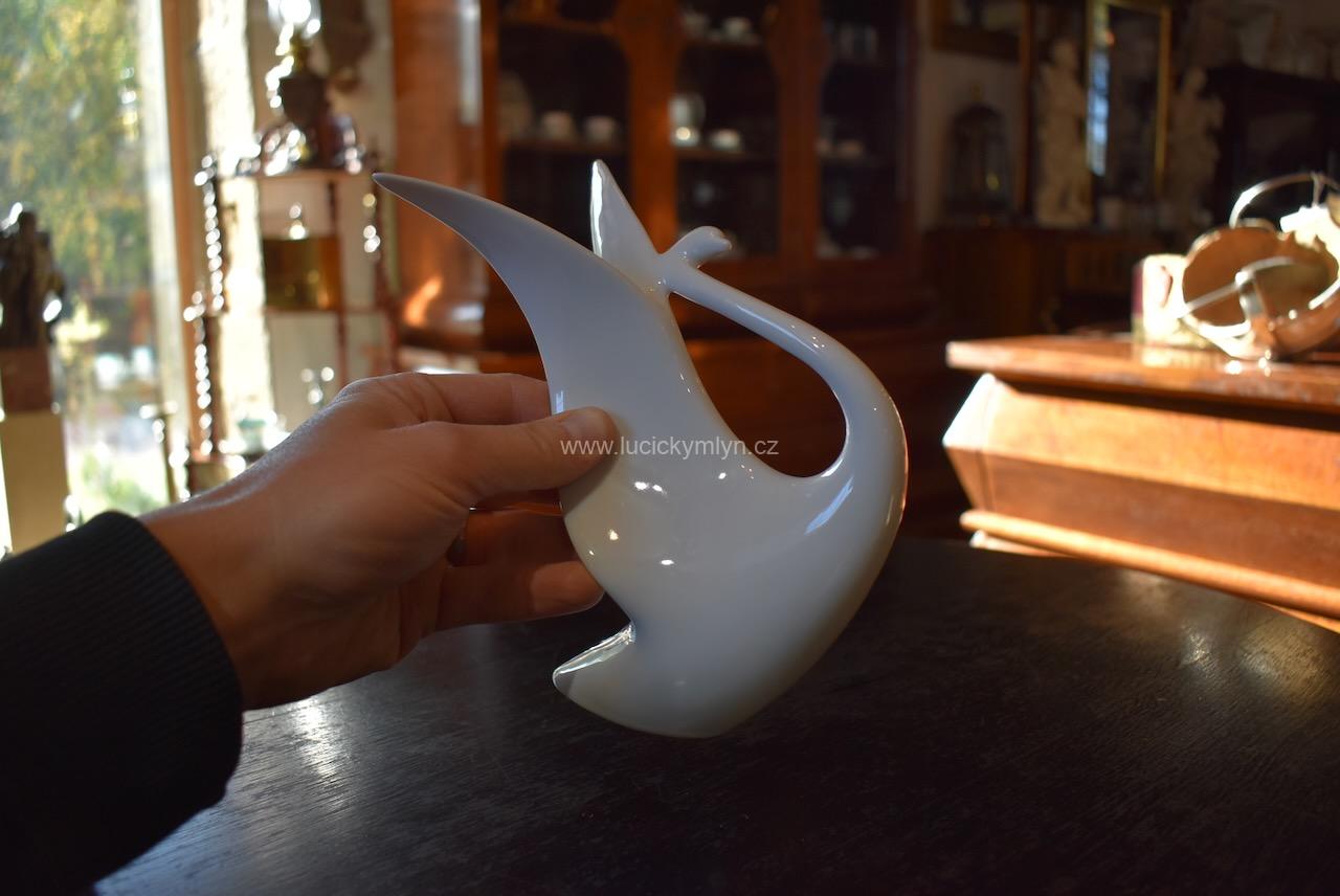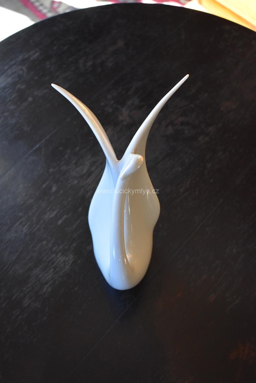 Oblíbený a sběratelsky vyhledávaný předmět – porcelánová soška – Labuť, Jaroslav Ježek, Royal Dux, návrh 1959