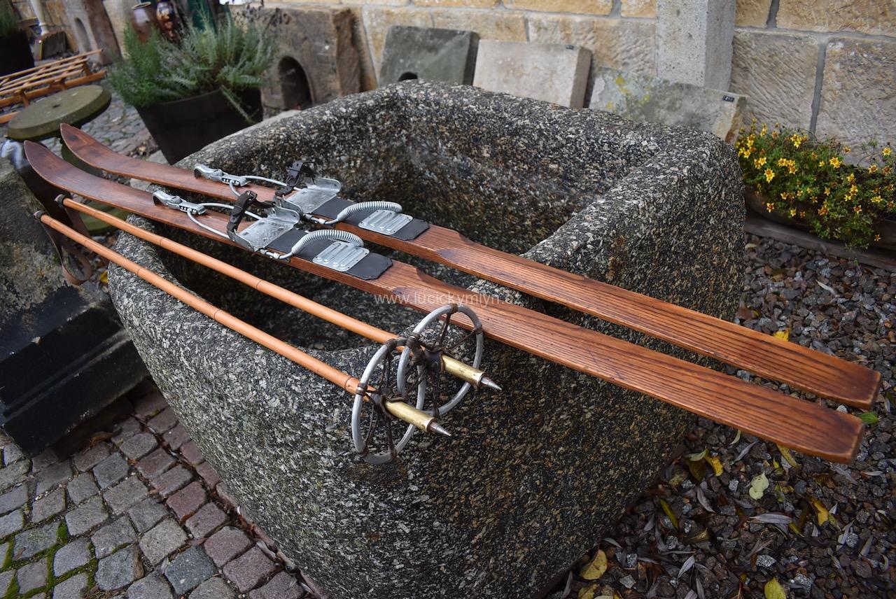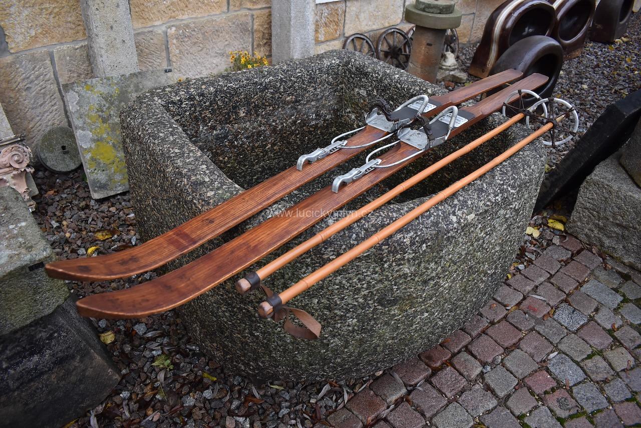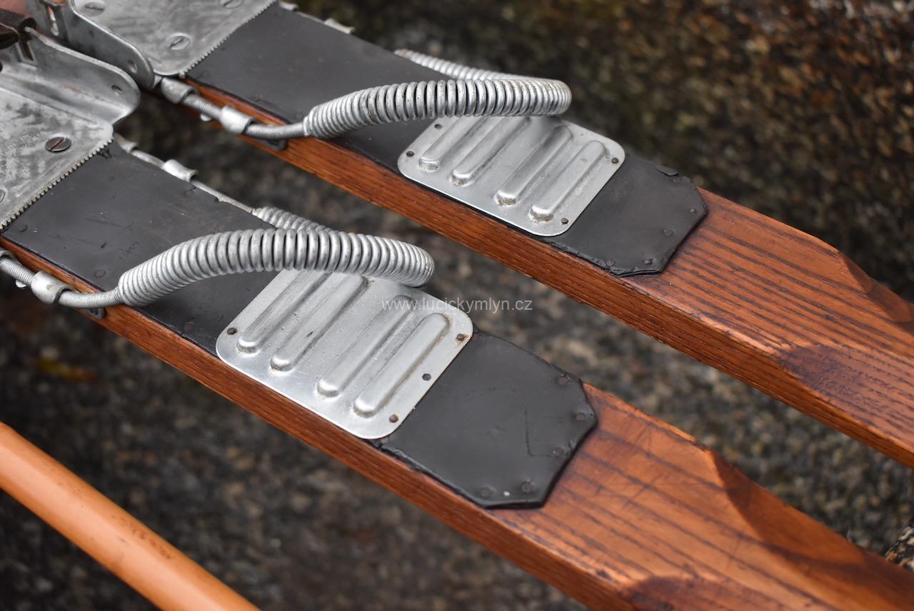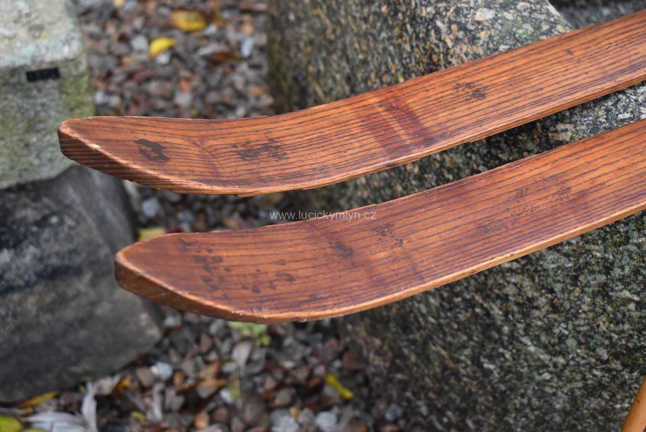 Poctivá práce specializovaného výrobce z první třetiny 20. století. Ohýbání špiček se provádělo za tepla napařením, podle kopyta. Krásně zachovalé lyže jsou zpevněny mírně vystouplým, vyztužujícím žebrem u vázání a mají původní vyčištěné vázání. Starožitné lyže se zachovaly ve velmi dobrém stavu a jsou po celkovém vyčištění a konzervaci. Hezké, sběratelsky hodnotné lyže nejen k dekoraci.