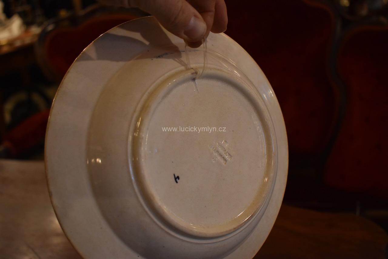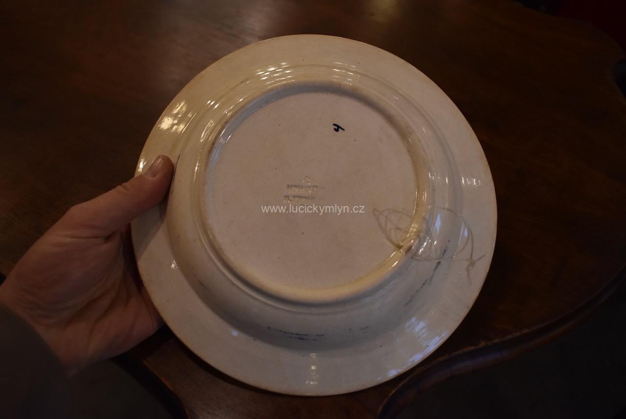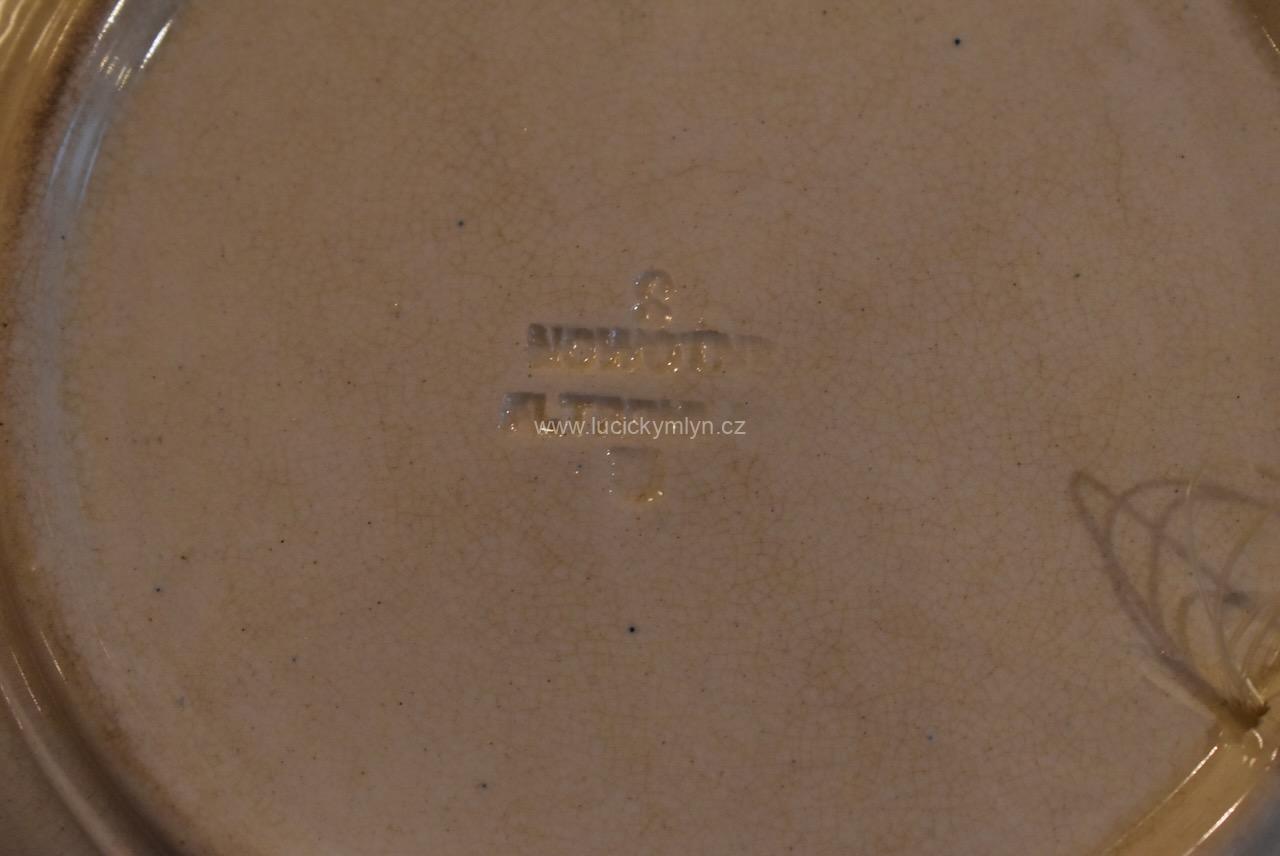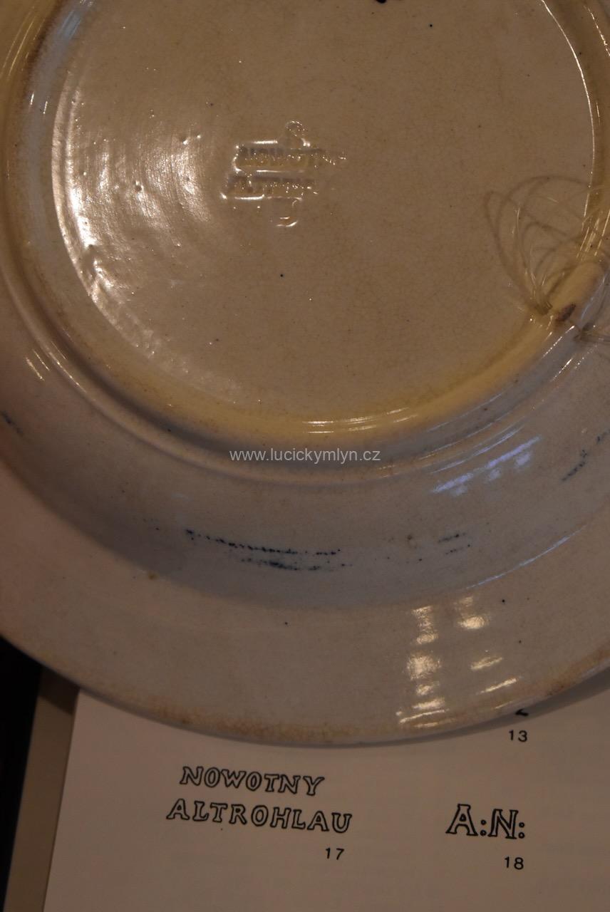 Starožitný závěsný talíř z krémově bílé kameniny, zn. AUGUST NOWOTNY in ALTROHLAU bei KARLSBAD – Stará Role