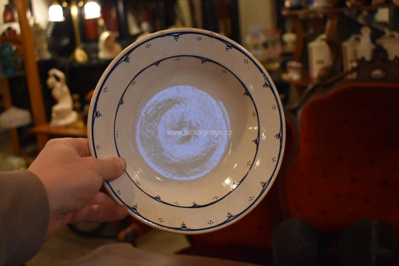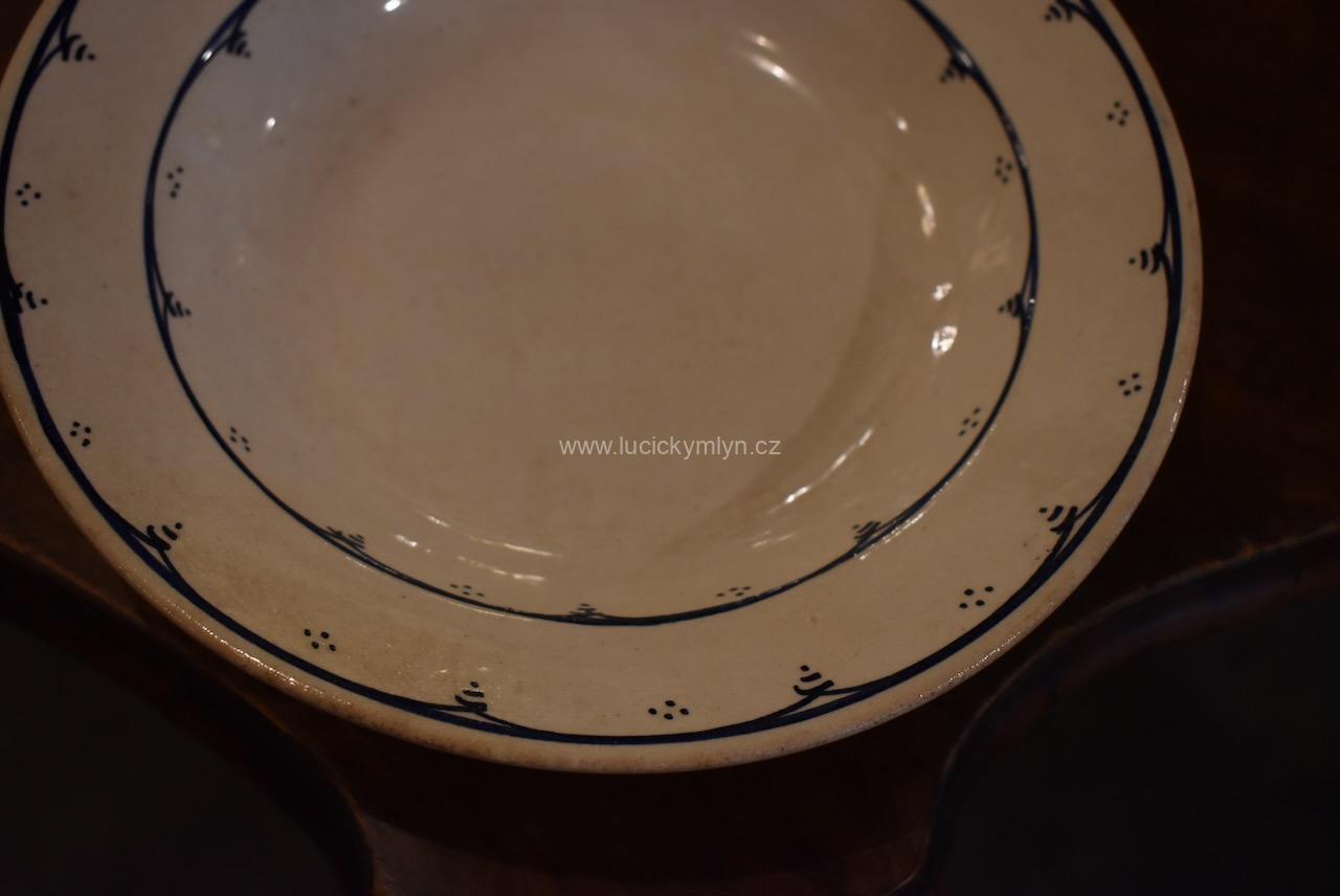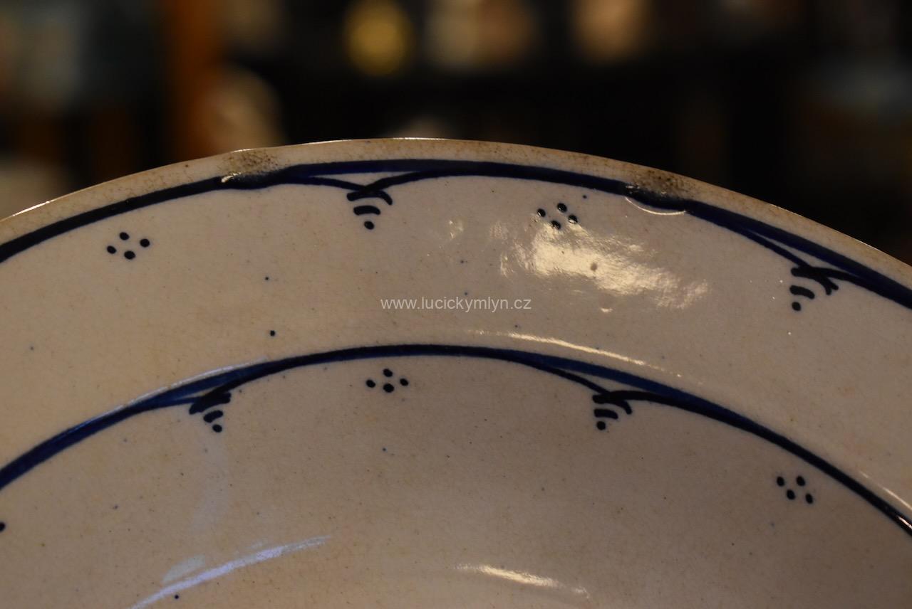Vyrobeno v Čechách okolo roku 1830. Ručně přizdobeno vkusnou kombinací obvodové a obloučkové linky s drobnými náznakovými kvítky. Tento hezký a nepoškozený, sběratelsky i muzejně zajímavý, starožitný závěsný talíř z období biedermeieru se zachoval zcela bez poškození.