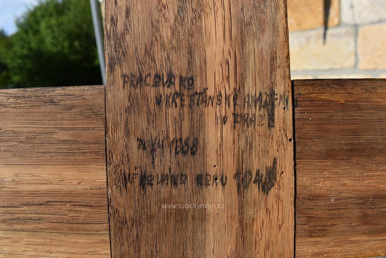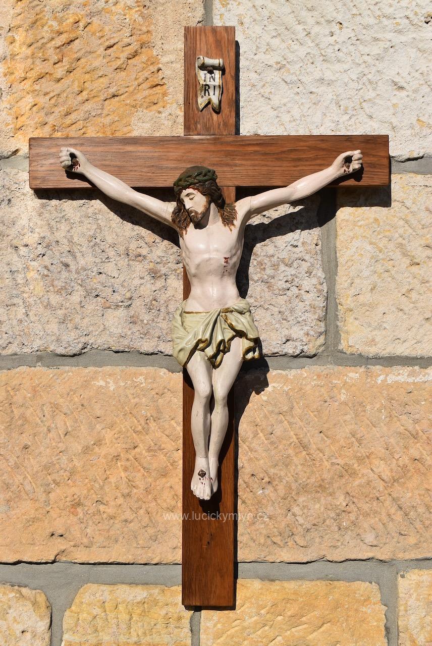 Originální předmět vyšší řezbářské úrovně, pochází z bohatšího měšťanského prostředí. Tělo i končetiny ukřižovaného spasitele mají anatomicky vydařené rysy i proporce. Anticky pojatá bederní rouška, jistě zaujme výrazně ztvárněnými, hlubokými a pravidelně rozmístěnými průhyby. Utrpení vykupitelovo také dokresluje i Kristova trnitá koruna, usazená na lehce svěšené hlavě. Také tento neodmyslitelný prvek vytvořil zkušený řezbář postupným odebíráním materiálu z hlavního lipového masivu. Dílko je na své stáří mimořádně dobře zachovalé. Zdařilá závěsná dřevořezba je originálním předmětem, jež prošel drobnou opravou a očištěním polychromie, nebo-li tradičním způsobem malované povrchové úpravy. Na zadní části je praktické zahloubení se závěsným plechovým páskem.