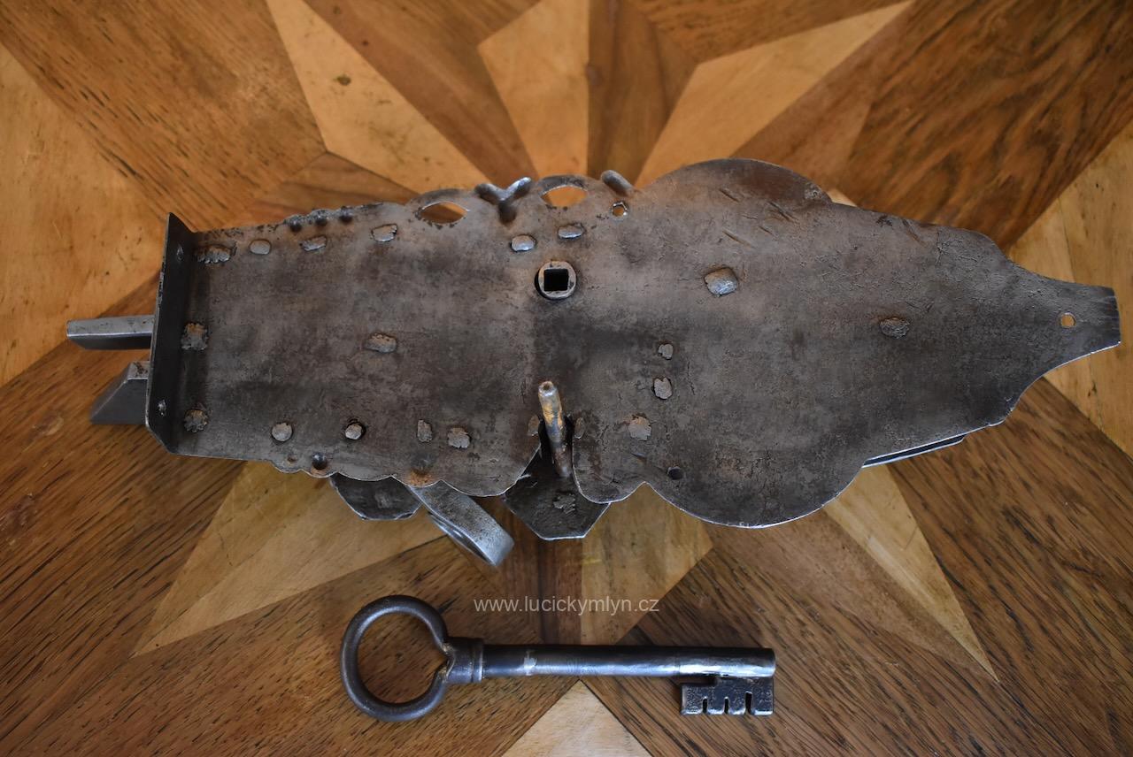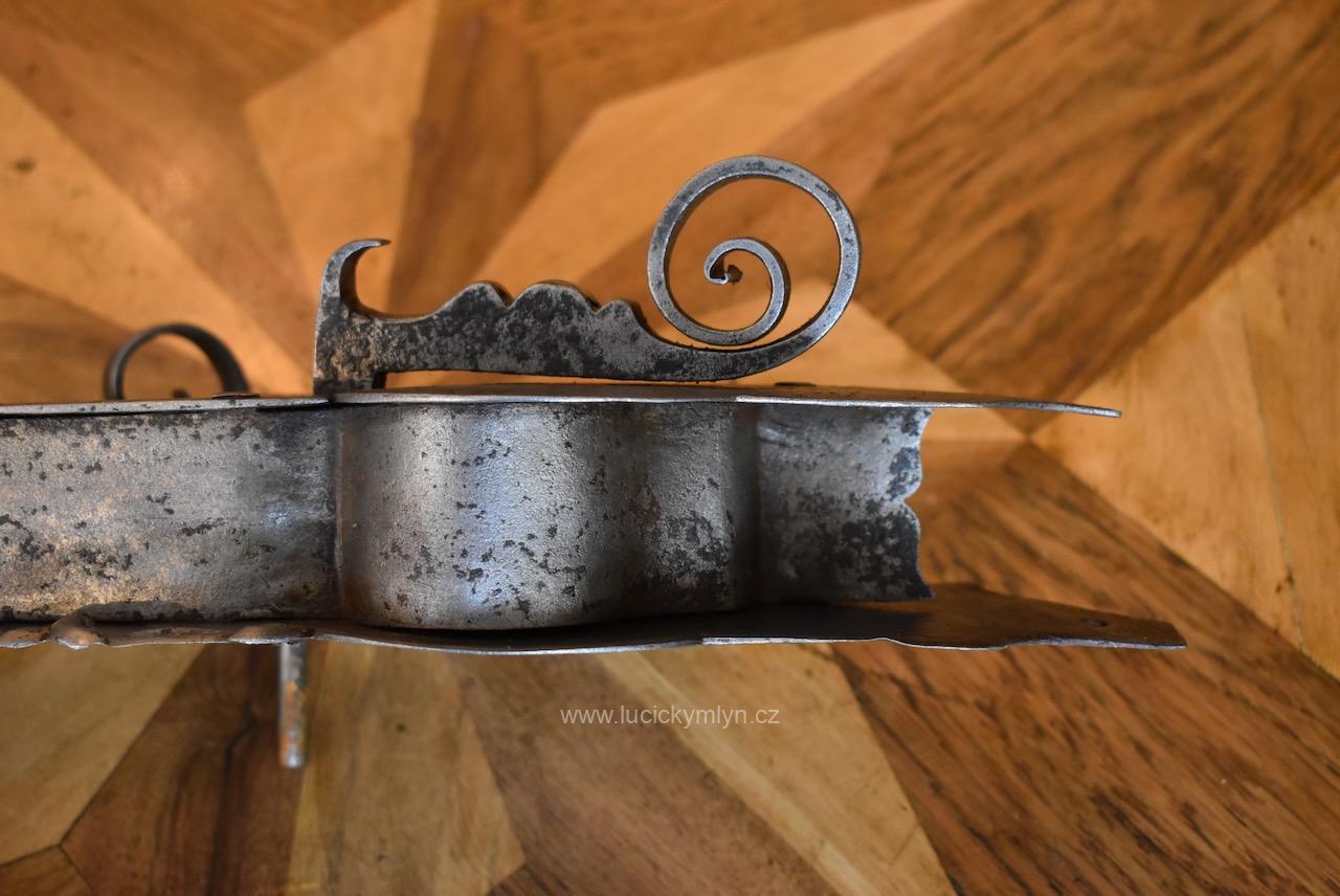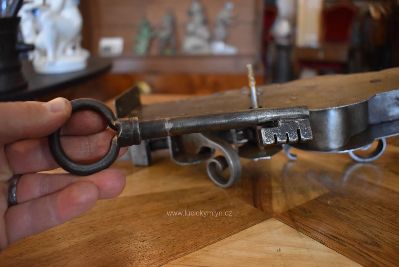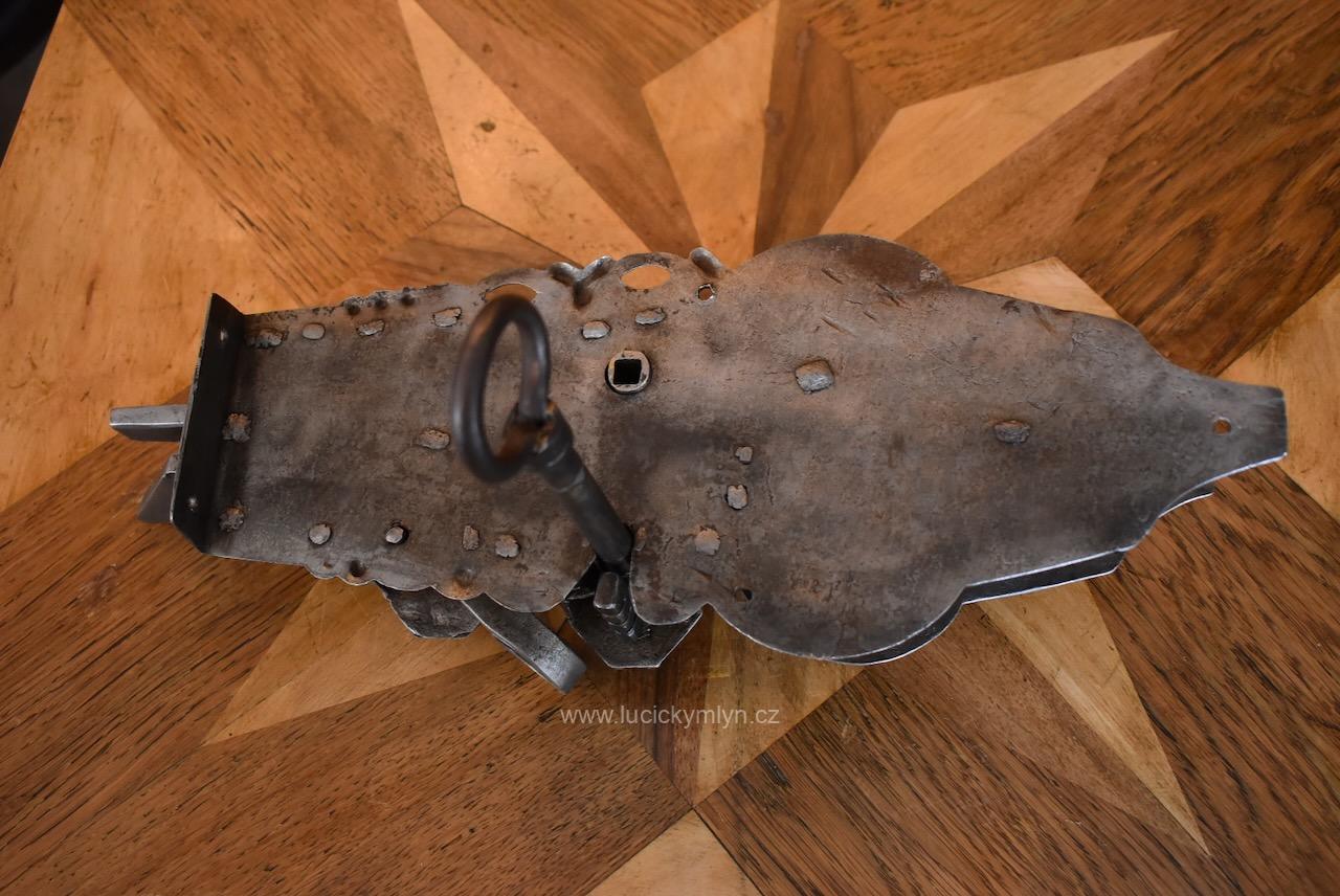 Velký a reprezentativní ručně kovaný a funkční starožitný dveřní otevřený zámek z období vrcholné renesance – Čechy druhá polovina 17. stol.