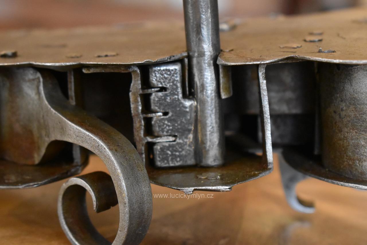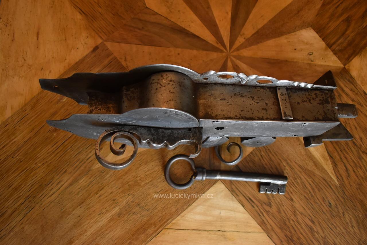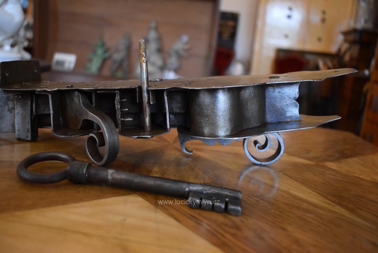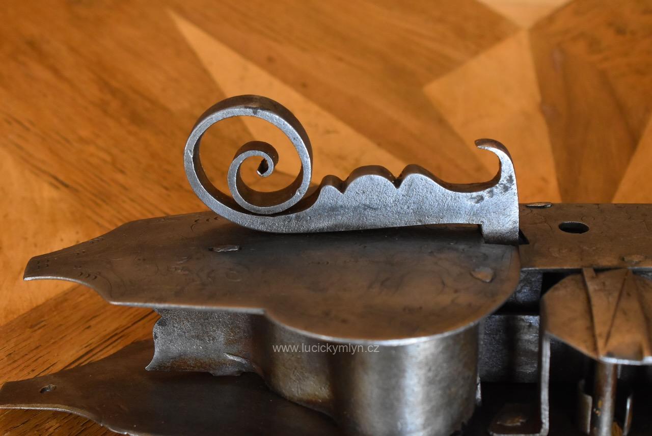 Velký a reprezentativní ručně kovaný a funkční starožitný dveřní otevřený zámek z období vrcholné renesance – Čechy druhá polovina 17. stol.