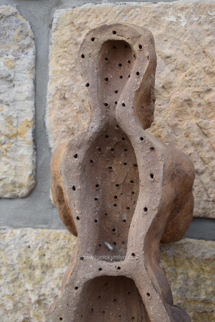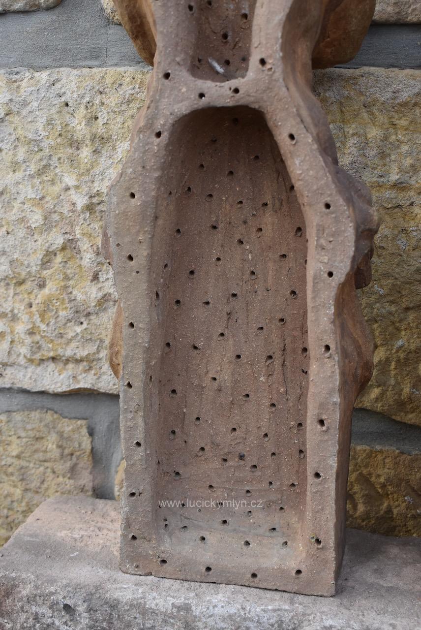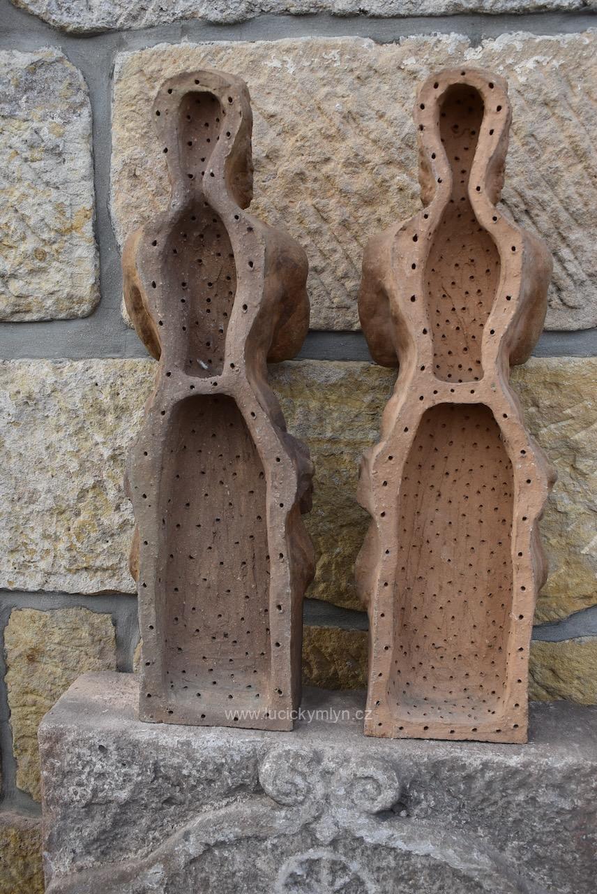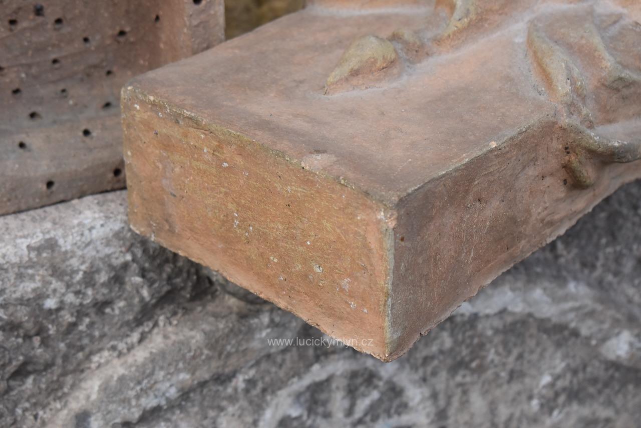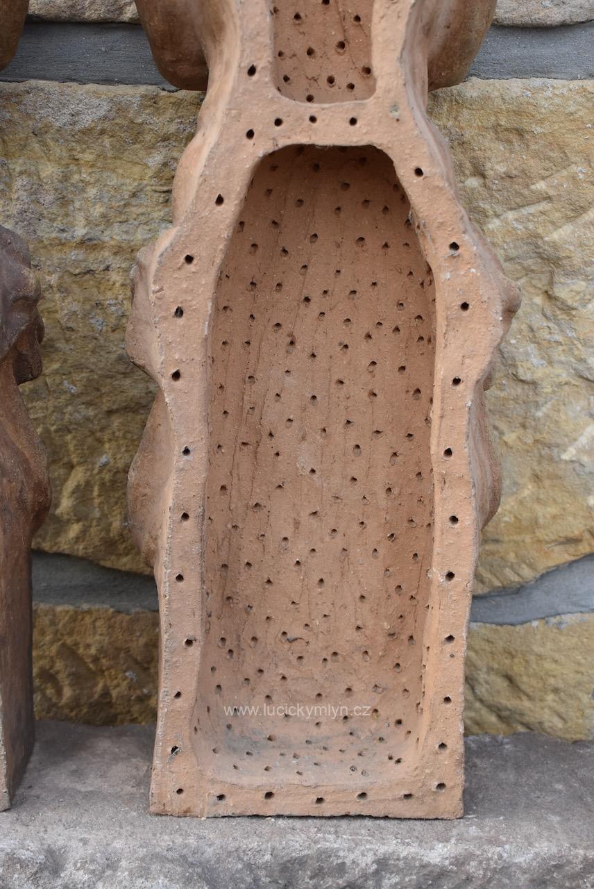 Větší starožitné, fasádní pilastrové ozdoby – sošky Atlantů, vyrobené okolo roku 1900 z ostře pálené hlíny