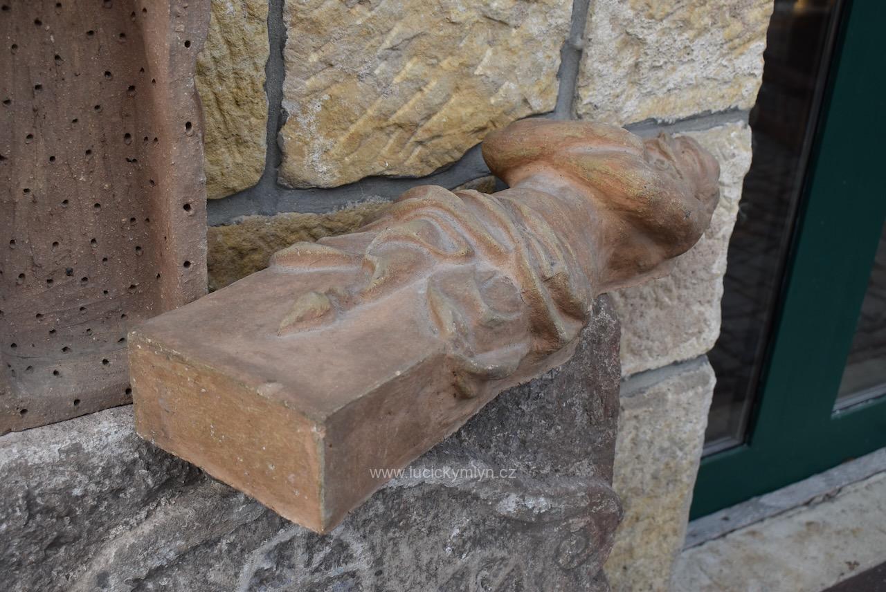 Velmi tvrdý, těžký a trvanlivý materiál, byl záměrně zvolen pro velmi náročné fasádní použití. Párový atlanti jsou stylizovanou podobou mohutného a svalnatého muže, tzv. tytánem, který byl dle řecké mytologie, odsouzen samotným Diem k nekončícímu vynášení nebeské klenby na svých bedrech. Tento v mnoha stylech často užívaný typ sochařské výzdoby, můžeme zvláště v životní i nadživotní velikosti vídat na významných měšťanských a zvláště palácových budovách, kterak symbolicky vynáší rozličné portály, římsy a balkony. Originální architektonické prvky, v krásném a nepoškozeném původním stavu.
